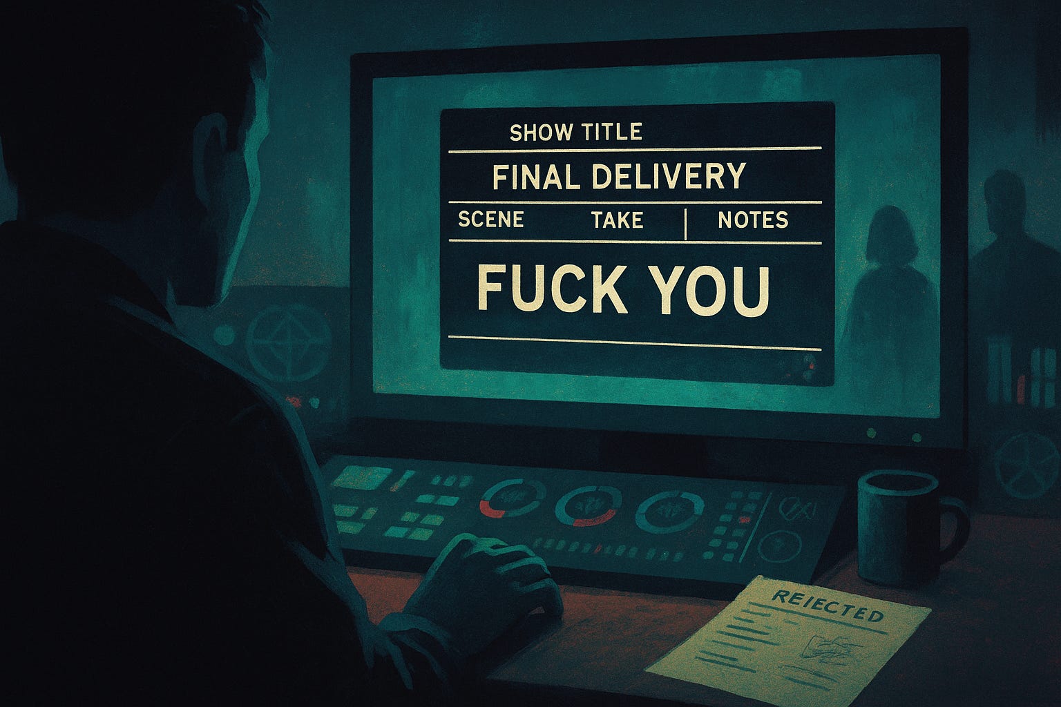 Everyone in the industry knew deliveries got bounced all the time; it was routine. But this wasn’t about the show anymore — it was about blame.